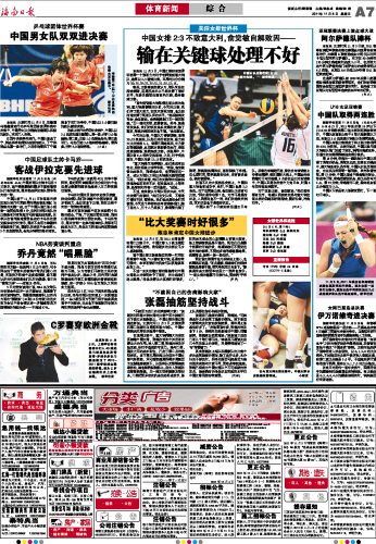 海南日报 体育新闻 综 合 007 2011-11-061 2011年11月06日 星期日