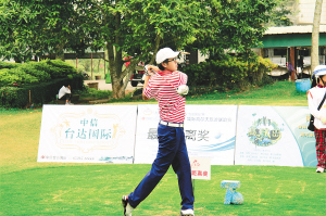 | “阳光海口”城际高尔夫赛参赛队员在比赛中挥杆。 小楚 摄 |
