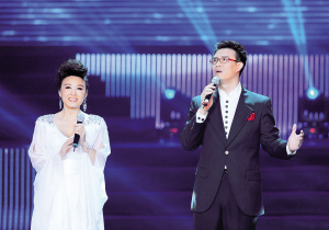 11月5日晚,“2011白燕升感恩中原大型公益演唱会”在郑州的河南艺术中心举行。取名“燕歌行”的演唱会通过演绎歌与戏,表达白燕升从业20年的梨园情结。 图为中央电视台戏曲主持人白燕升(右)和助演嘉宾吴琼在同台演唱。新华社发