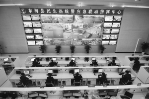 这是江苏东海民生热线暨指挥联动中心大厅。