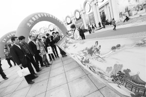 11月5日,在第七届北京国际金融博览会的一场拍卖会上,由6名工人耗时5年绣成的22米长的十字绣手工艺品《清明上河图》以120万元成交。 新华社发
