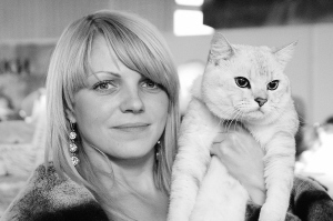 11月5日,在俄罗斯下诺夫哥罗德,一名女子抱着参展的猫留影。 新华社发(安德烈摄)