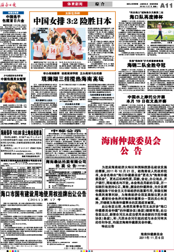 | 海南日报 体育新闻 011 2011-11-071 2011年11月07日 星期一 |