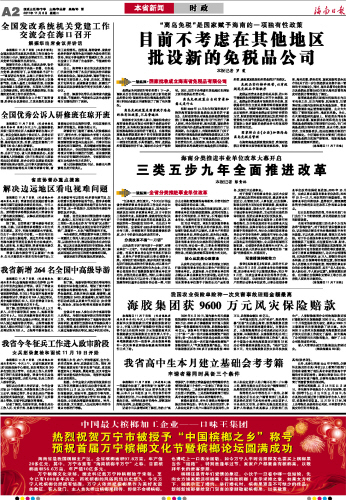 海南日报 本省新闻 002 2011-11-081 2011年11月08日 星期二
