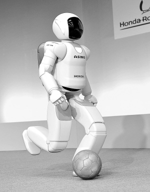 可以不靠操作员操纵进行各项运动 11月8日,在日本首都东京郊区和光市本田公司的实验室里,最新版的ASIMO机器人表演踢球。 升级版的ASIMO机器人可以不靠操作员操纵进行各项运动,对外界环境的适应能力也大大提高。 新华社/法新