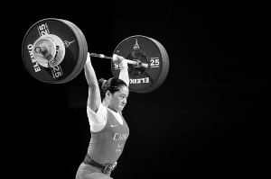 在关键的挺举比赛中,21岁的李雪英三次试举全部成功,以133公斤和总成绩236公斤完成了自己的比赛。而在抓举比赛中落后李雪英两公斤的诺维卡瓦则需要在最后一次挺举中举起136公斤,才能在总成绩的角逐中战胜李雪英。这位年届三十的白俄罗斯老将决定孤注一掷,强悍地把136公斤的杠铃举过了头顶,以237公斤、比李雪英多一公斤的成绩夺得总成绩的金牌,同时也把挺举金牌挂到了自己的脖子上。