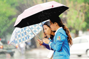 11月8日是农历二十四节气的“立冬”。当天,海口风雨交加、气温明显降低,出行的市民换上了秋装。 本报记者 李英挺 摄