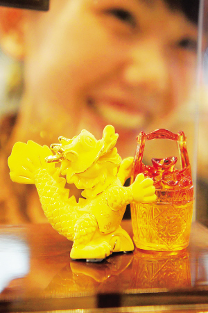 11月8日,消费者在山东省聊城市一家大型商场观看“金龙招宝”黄金摆件。 据预测,今年我国黄金产量将超过350吨,消费量则将达400吨。 新华社发