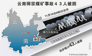 新华社昆明11月10日电(记者李萌 浦超 关桂峰)10日早晨,云南省曲靖市师宗县私庄煤矿发生煤矿事故。目前已造成20人死亡,23名矿工仍困井下。 据云南省政府应急办通报,这是一起煤与瓦斯突出事故,初步统计43人被困,省委书记秦光荣率队赶赴现场,由省卫生、安监、煤监、工信委等部门人员组成的工作组和救援队伍紧急赶赴现场。曲靖市已启动应急救援预案,在现场展开先期抢险救援工作。云南消防部队官兵也赶赴现场。
