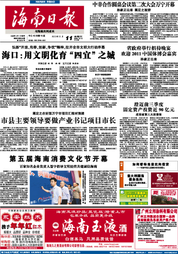 海南日报 首版 001 2011-11-111 2011年11月11日 星期五