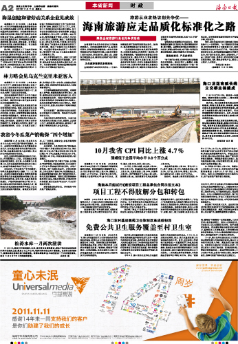 海南日报 本省新闻 002 2011-11-111 2011年11月11日 星期五