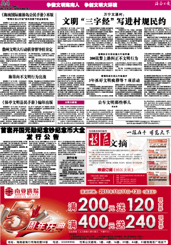 海南日报 争做文明海南人 争创文明大环境 004 2011-11-111 2011年11月11日 星期五
