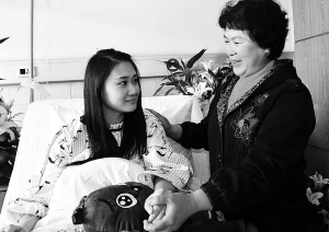 在11楼刁娜就诊的骨科病房里,记者看到两位老人正在忙着为刁娜清理早上留下的垃圾。一打听才知道,其中一位是刁娜的母亲,另一位是撞伤刁娜的驾驶员的母亲“杜妈妈”。
