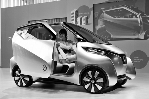 11月12日,在日本横滨的日产公司总部,一名模特在展示该公司刚刚推出的Pivo 3型可遥控电动概念车。 据介绍,这款电动车具备自动驾驶系统,车主可用手机将其从停车场“招唤”到自己身边。 新华社/法新