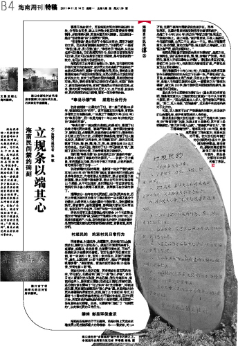 海口美社村“乡规民约”刻于村中石碑之上。
