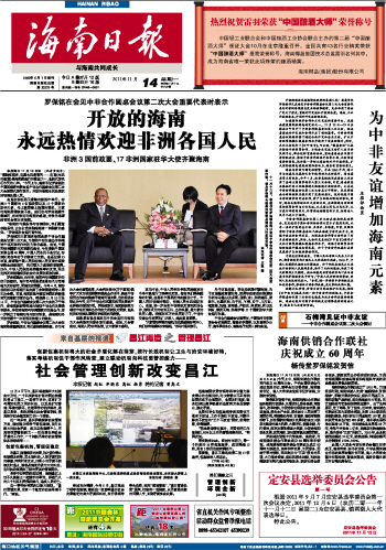 | 海南日报 头版 001 2011-11-141 2011年11月14日 星期一 |