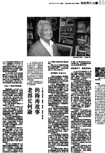 | 海南日报 海南周刊人物 017 2011-11-141 2011年11月14日 星期一 |