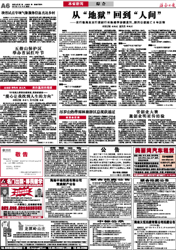 | 海南日报 本省新闻综合 006 2011-11-141 2011年11月14日 星期一 |