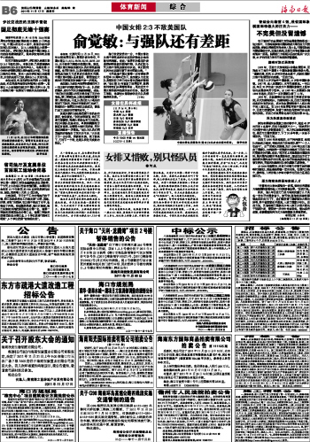 海南日报 体育新闻综合 014 2011-11-171 2011年11月17日 星期四