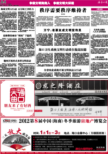 海南日报 争做文明海南人 争创文明大环境 004 2011-11-171 2011年11月17日 星期四