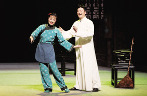 17日晚,海南———安徽政协文化交流黄梅戏演出活动在海南省歌舞剧院上演。图为《雷雨》中的周萍与鲁四凤在舞台上诉说衷情。 本报记者 苏晓杰 摄
