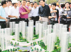 | 一些上海居民正在观看保障性住房模型(9月28日摄)。