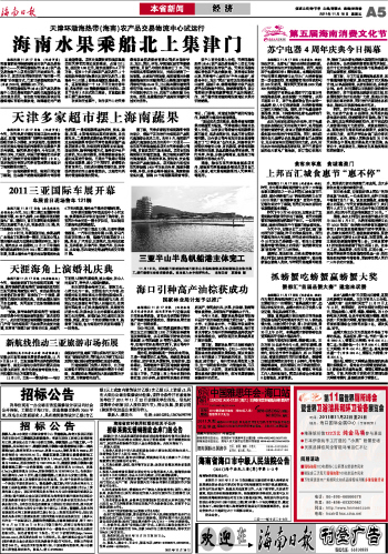 海南日报 本省新闻经济 005 2011-11-181 2011年11月18日 星期五