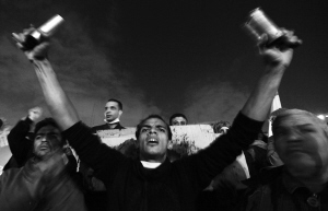 | 11月20日,示威者在开罗向军警投掷石块。 (本栏照片新华社发)