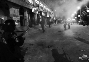 | 11月20日,在埃及首都开罗,警察向抗议者发射催泪瓦斯。