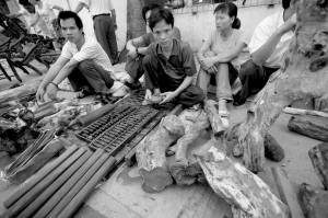 自发形成的东湖古玩市场,吸引着大量收藏迷趋之若鹜。久而久之,这里又自发形成了一个相当规模的花梨市场。花梨木的价值,仅次于紫檀。早在唐代,人们就认识和利用了花梨木。陈藏器在《本草拾遗》上说,“花榈,木出安南及南海,用作床几,似紫檀而色赤,性坚好”。由于产地土质不同,各地花梨木质色泽也不同。海南是我国花梨木材最大的生产地,所产的花梨质优纹美、清香四溢。与国外花梨相比,海南花梨木含油量高达3.8%,远远高出泰国花梨木0.3%、越南花梨木0.8%的含油量。这使得海南花梨木制作的家具天然顺滑,无需油漆,色泽好,经久耐用。到东湖古玩市场看花梨,也成为海口一道别样的风景线。