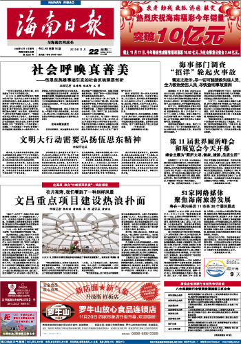 海南日报 首版 001 2011-11-221 2011年11月22日 星期二