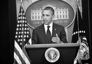 | 11月21日,在美国首都华盛顿的白宫,美国总统奥巴马就国会减赤“超级委员会”未达成协议发表声明。 新华社发 |