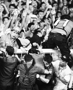 11月21日,在东南亚运动会男足决赛中,东道主印度尼西亚队不敌马来西亚队。赛前,超过9万名球迷像潮水般涌进球场,期间发生的踩踏事件造成两名球迷死亡。 新华社发