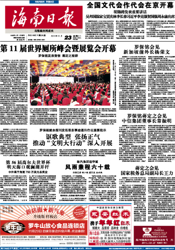 海南日报 首版 001 2011-11-231 2011年11月23日 星期三