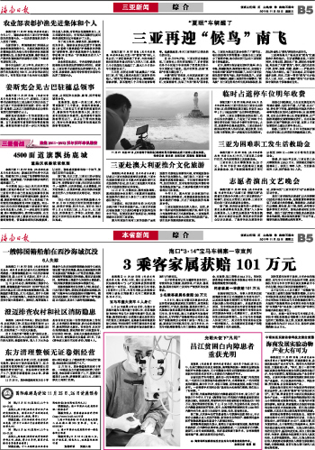 海南日报 三亚新闻/本省新闻 013 2011-11-231 2011年11月23日 星期三
