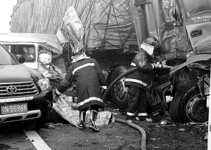 ↑11月23日,湖北(武)汉宜(昌)高速公路仙桃段因大雾发生多车相撞事故,目前已导致6人死亡、11人受伤。 新华社发 6死11伤
