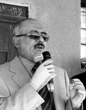 | →图为萨利赫在也门首都萨那附近发表讲话的资料照片。 新华社/法新 |