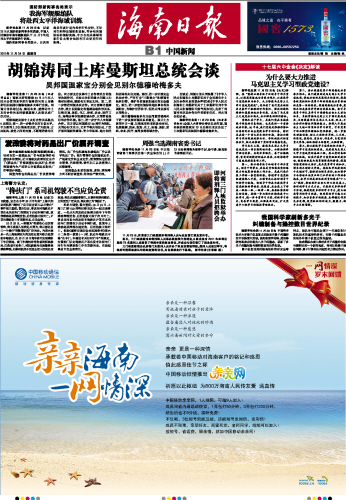 海南日报报业集团旗下媒体: 海南日报 | 南国都市报 | 南海网 | 南岛晚报 | 证券导报 加入收藏 | 设为首页