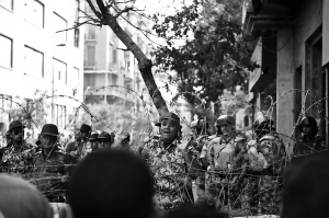 埃及首都开罗解放广场示威者23日与警方短暂“停火”,宪兵和宗教人士介入,试图隔离双方、制止冲突。