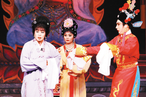 11月23日晚,海口市琼山区琼剧团在天茂剧院为该区第12次党代会与会代表及戏迷献演大型古装琼剧《忠孝富贵家》,让代表和戏迷们感受到了琼剧的魅力。 本报记者 张杰 摄