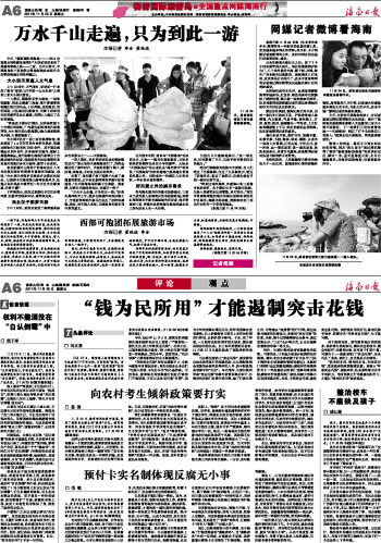 海南日报 全国重点网媒海南行/评 论 006 2011-11-251 2011年11月25日 星期五