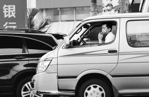海口南海大道上一驾驶员边开车边打手机。 本报记者 古月 摄