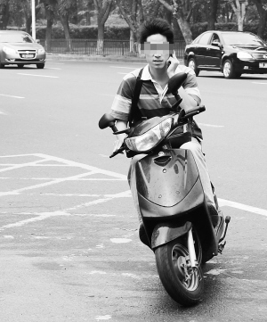 边骑车边打手机,而且还不戴安全头盔,这位市民“病”情不轻。 本报记者 古月 摄