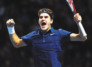 | 费德勒庆祝胜利。 新华社发发