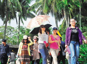 11月27日,游客在琼海万泉河游览区观光。随着冬日的到来,气温逐日下降,而海南游却不断升温。据琼海万泉河游览区统计,每天前来观光漂流的游客达1000多人次。 特约记者 蒙钟德 摄