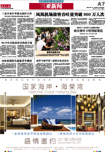 海南日报 三亚新闻 007 2011-11-291 2011年11月29日 星期二
