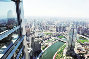 天津,这个传说由精卫填海而成的北方沿海城市,正以前所未有的步伐奋力崛起:地区生产总值连续5年年均增速达16%,预计今年可达1.13万亿元,成为区域发展的领跑者和带动者。 图为在308米高的津塔上眺望海河美景。 新华社发