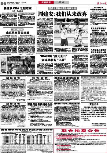 海南日报 体育新闻综合 014 2011-11-301 2011年11月30日 星期三