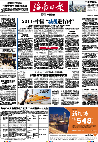 海南日报 中国新闻 009 2011-11-301 2011年11月30日 星期三