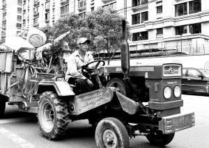 | 一名外来务工者在上海市的外环线道路附近清除建筑垃圾。 (本组照片:新华社发) |